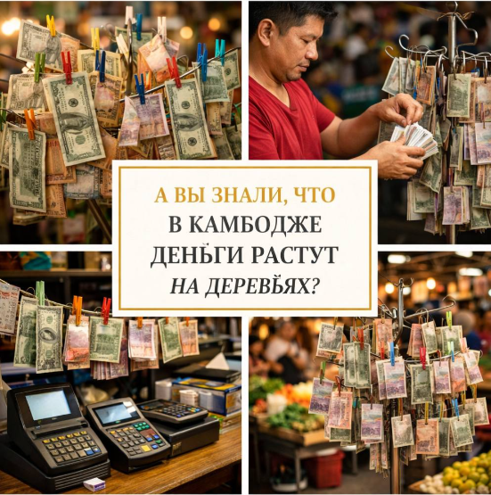 В Камбодже деньги — это не просто средство оплаты, а настоящая культурная особенность, которую туристы запоминают надолго. Здесь можно увидеть то, чего нет почти нигде в мире — «денежные деревья», где купюры аккуратно развешаны, словно листья. Но за этим необычным зрелищем скрывается вполне логичная и удобная система, которая сложилась исторически. Камбоджа — одна из немногих стран, где одновременно активно используются две валюты: Это значит, что: 📌 Например: вы платите 10$, а сдачу получаете частично в долларах и частично в риелях. Чтобы не путаться в огромном количестве мелких купюр, продавцы придумали простое и гениальное решение. Они: В итоге получается конструкция, напоминающая дерево —
