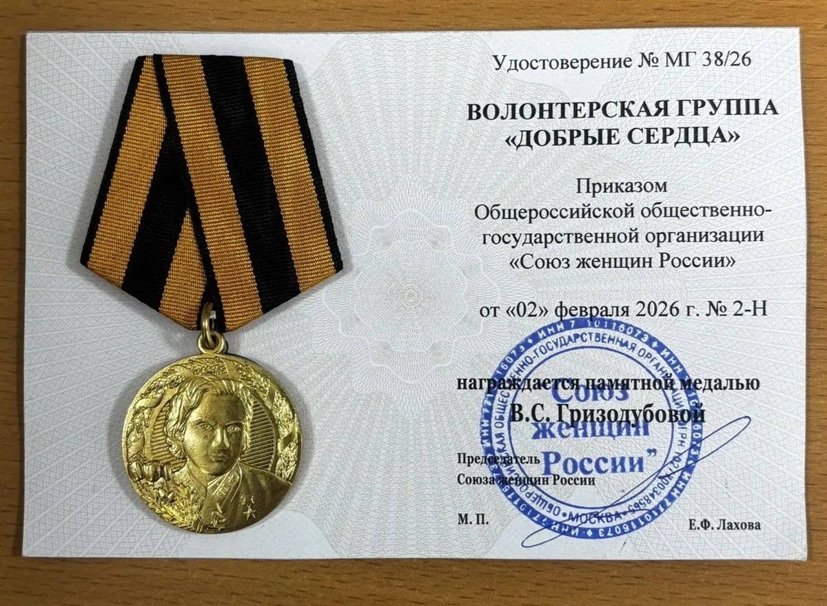 Приказом Общероссийской общественно-государственной организации «Союз женщин России» волонтерская команда «Добрые сердца» с.Натырбово за самоотверженный труд в оказании помощи участникам специальной военной операции на Украине удостоена памятной медали В.С.Гризодубовой. Поздравляем всех участников волонтерской команды с заслуженной наградой! Вы – пример гражданской ответственности, героизма и преданности патриотическому делу, желанию бескорыстно помочь тем, кто защищает нашу Родину. Пусть этот успех станет стимулом для новых свершений и побед!