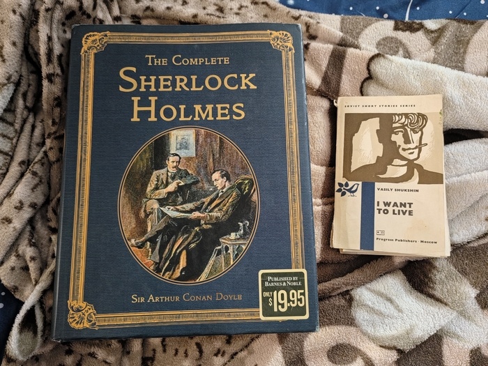 Как мы приезжаем в новые апартаменты, так замечаем, что прежние их «арендаторы» ретируются впопыхах, бросая не только книги, но и зубные щётки, пасту и некоторые продукты питания в холодильнике. Их судьба интересна, конечно, однако я сразу листаю книгу рассказов В.М. Шукшина «I want to live». С радостью обнаруживаю, насколько она проще воспринимается-читается из-за минимального присутствия малознакомой литературной лексики. Рассказы из этой книги я читал раннее на русском, естественно. Брал из бабушкиной богатой библиотеки в Омске. Описания у Шукшина не такие сложные. Конечно, её переводили с русского языка на английский. Это проза, переведённая московским издательством «Progress Publishers» в 1973 году мне также интересна в качестве исследования. Здорово перечитать рассказы Василия Шукшина на английском, понять, как советские переводчики передали глубину народной прозы алтайского писателя-самородка. У них сохранился дух российской прозы, поэтому я её воспринимаю гораздо легче. Другое дело — Артур Конан Дойль. Читаю одну и другую книгу и понимаю, что читать надо в оригинале, иначе пропадает атмосфера литературы, пусть даже хорошо переведенного произведения.