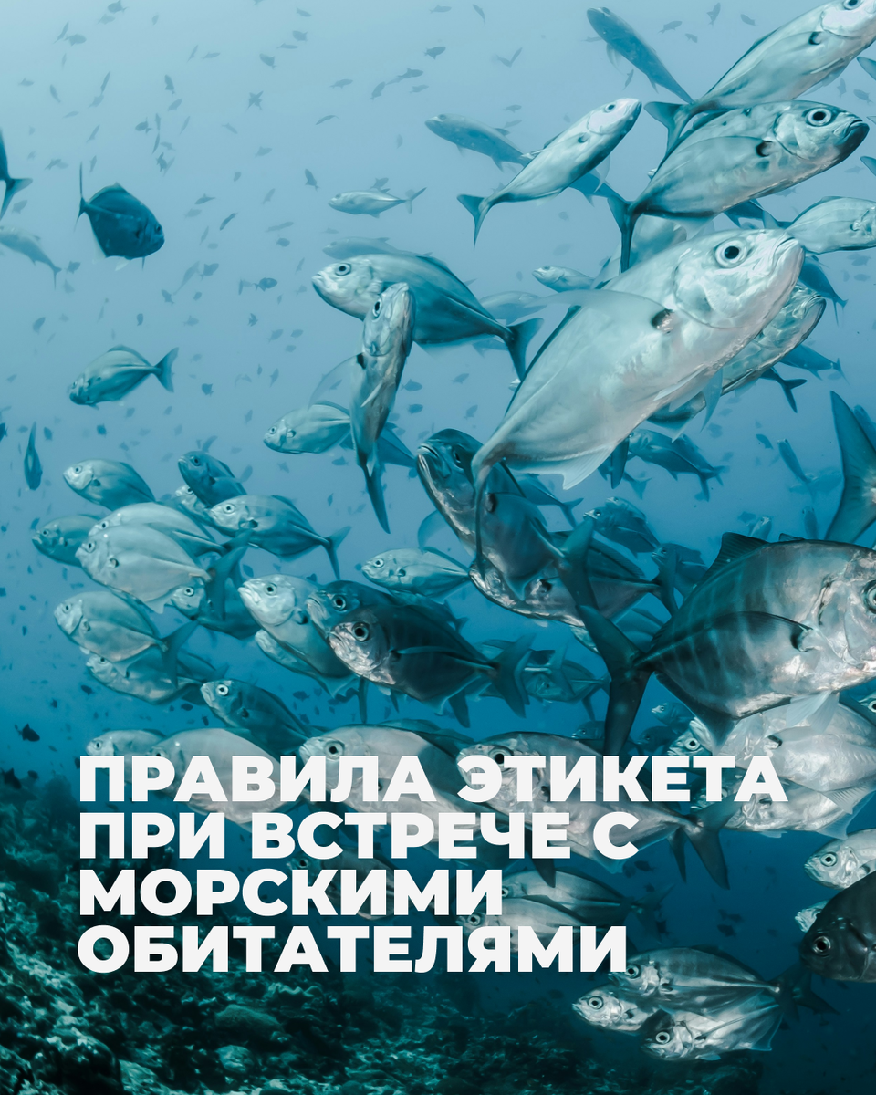 Погружаясь в подводный мир, мы получаем шанс увидеть морских животных в их естественной среде. Но чтобы не нарушить хрупкий баланс и не навредить обитателям глубин, важно соблюдать простые правила поведения под водой. Морские животные не привыкли к людям — наше присутствие - уже стресс для них. Наши неаккуратные действия могут: нарушить естественное поведение (питание, миграцию, размножение), навредить экосистемам (рифы, водоросли), а также создать опасность для самого фридайвера. Основные правила этикета: ❗️Слушайте инструктора. Перед погружением всегда проходите инструктаж, где вам расскажут об особенностях локации и местных обитателях. ❗️Сохраняйте дистанцию. Держитесь на расстоянии 2–5 м — так вы не напугаете животное. ❗️Не трогайте. Прикосновения могут повредить защитный слой на коже рыб и рептилий, делая их уязвимыми к болезням. ❗️Двигайтесь медленно. Осознанные и плавные движения не спровоцируют панику у животных и позволят наблюдать за ними дольше. ❗️Не кормите. Кормление меняе
