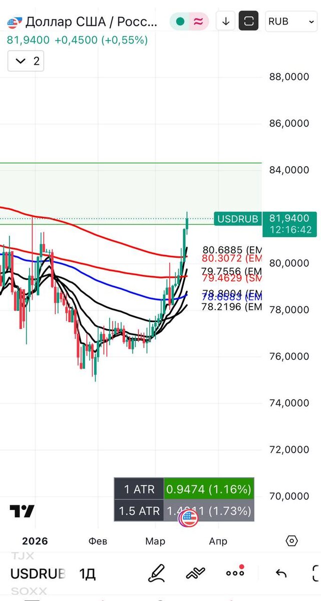 Доллар в моменте был выше 82₽ - впервые с октября. Начинается «бычий» тренд для валюты ? 🤔 Целый год был у нас накопить валюту по истинной цене #usd #rub