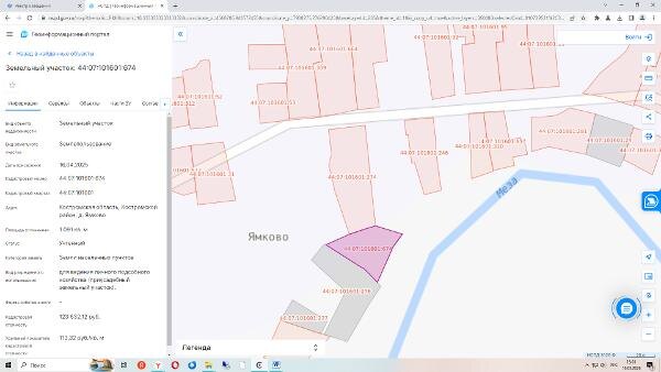 Название: Земельный участок с кадастровым номером 44:07:101601:674, общей площадью 1091 кв