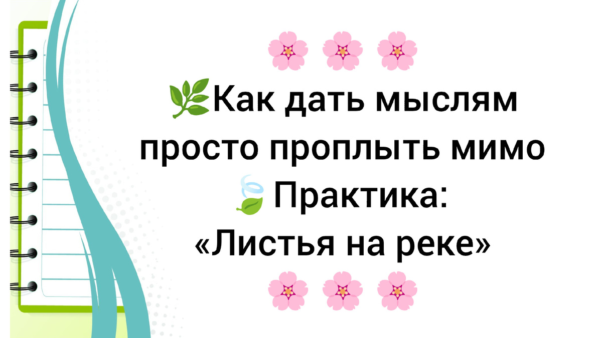 Вот простая и очень бережная практика, которая учит не бороться с мыслями, а замечать их и не проваливаться, а трезво анализировать. Она называется «Листья на реке».
