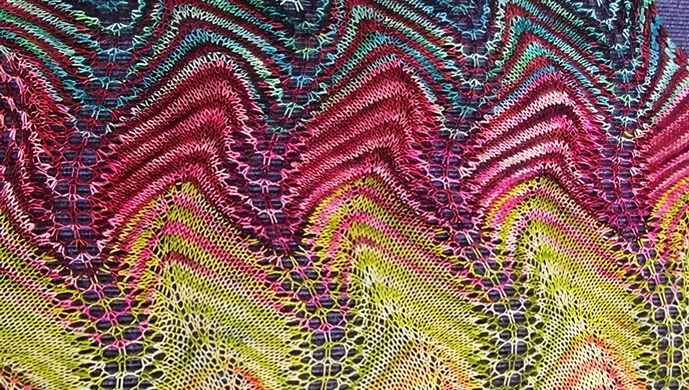 Полоса Миссони — это, по сути, повторяющийся узор, который создает волнообразные или зигзагообразные линии за счет комбинации прибавок и убавок петель в каждом ряду. Эти линии, выполненные в разных цветах, накладываются друг на друга, создавая характерный многоцветный эффект.