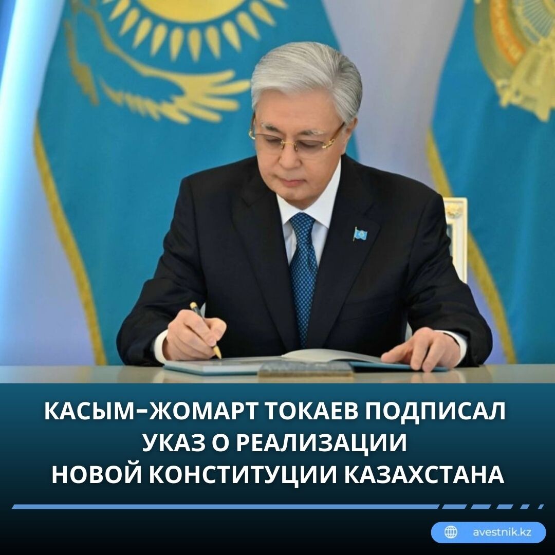 🖋 Глава государства Касым-Жомарт Токаев скрепил своей подписью Конституцию Республики Казахстан и подписал Указ «О мерах по реализации Конституции Республики Казахстан, принятой 15 марта 2026 года», передает Kazinform со ссылкой на Акорду. О мерах по реализации Конституции Республики Казахстан, принятой 15 марта 2026 года 17 марта 2026 года В связи с принятием на республиканском референдуме 15 марта 2026 года Конституции Республики Казахстан ПОСТАНОВЛЯЮ: 1. Опубликовать текст Конституции Республики Казахстан, принятой на республиканском референдуме 15 марта 2026 года (далее — Конституция Республики Казахстан), в периодических печатных изданиях «Егемен Казахстан» и «Казахстанская правда». 2. Передать оригинал Конституции Республики Казахстан, принятой на республиканском референдуме 30 августа 1995 года, на хранение в Архив Президента Республики Казахстан. 3. Установить, что оригинал Конституции Республики Казахстан хранится у Президента Республики Казахстан. 4. Центральной коми