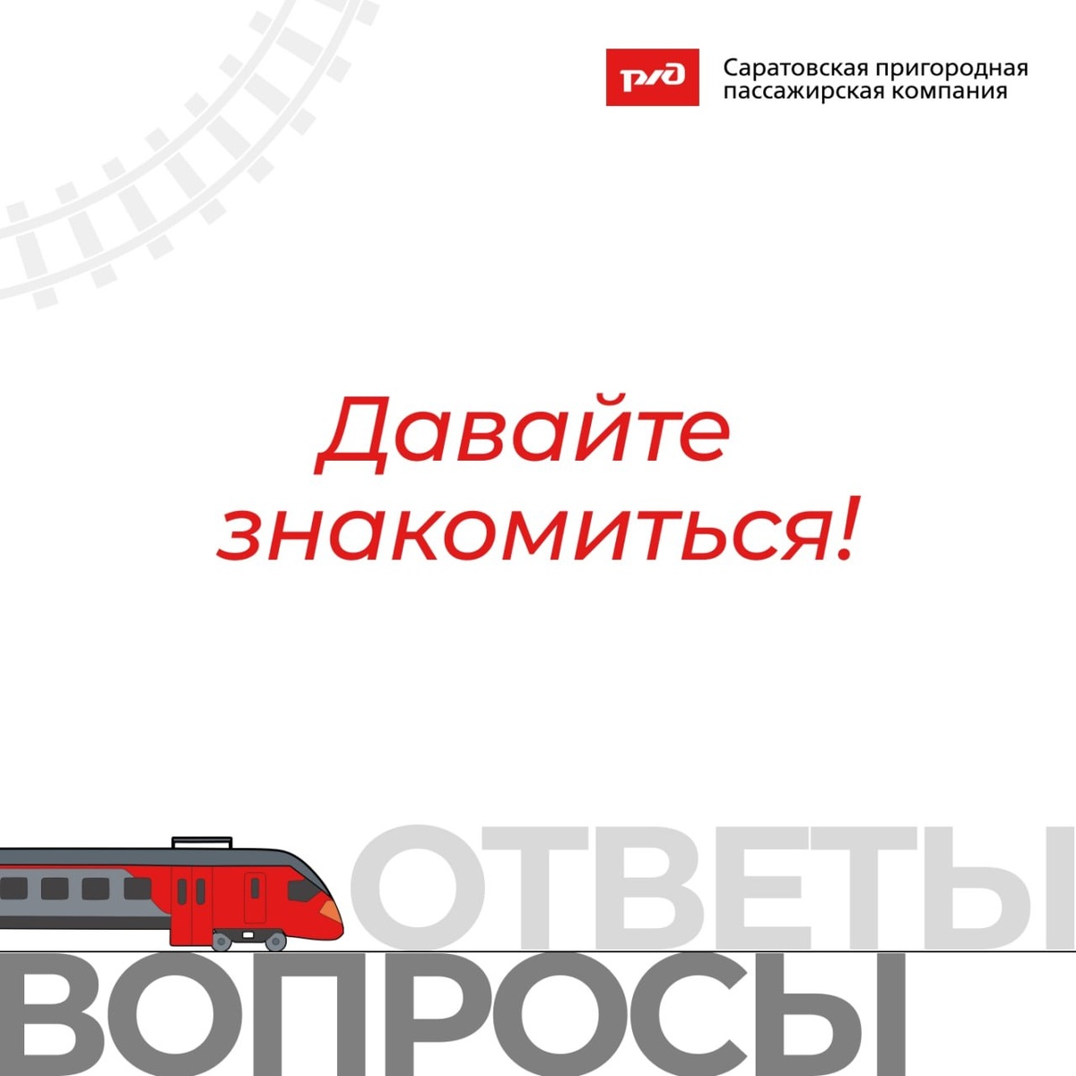 ! 📣 Наше сообщество становится все больше! Чтобы ваши поездки стали проще, мы запускаем рубрику #ВопросОтвет_СаратовскаяППК! 💡 Здесь мы будем разбирать самые актуальные и часто задаваемые вопросы, чтобы вы всегда были в курсе всех нюансов пригородных перевозок. Начнем нашу рубрику с главного - кто мы? 🟥 АО "Саратовская ППК" — дочернее общество ОАО "РЖД", которое основано 17 декабря 2010 года. С 1 января 2011 года Компания обеспечивает пригородные железнодорожные перевозки. Мы работаем для вас в двух регионах: по всей Саратовской области (охватываем 26 муниципальных районов) и в 5 районах Пензенской области. Наш приоритет — сделать ваши поездки на пригородных поездах максимально комфортными, безопасными и доступными. Следите за выпусками рубрики #ВопросОтвет_СаратовскаяППК – впереди много полезной информации! #СаратовскаяППК #ПригородныеПоезда #ВопросОтвет #ЖД #Саратов #Пенза #ПолезнаяИнформация