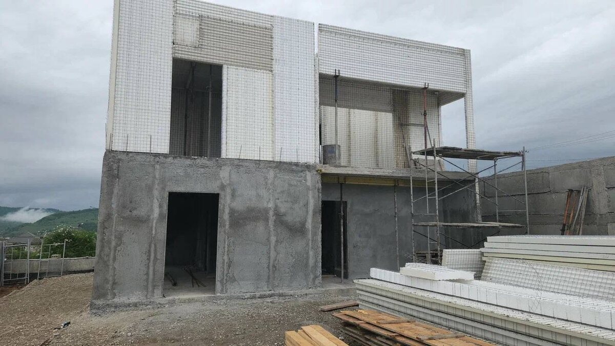 Двухэтажный дом в процессе строительства — наглядный пример современного подхода к частному домостроению
