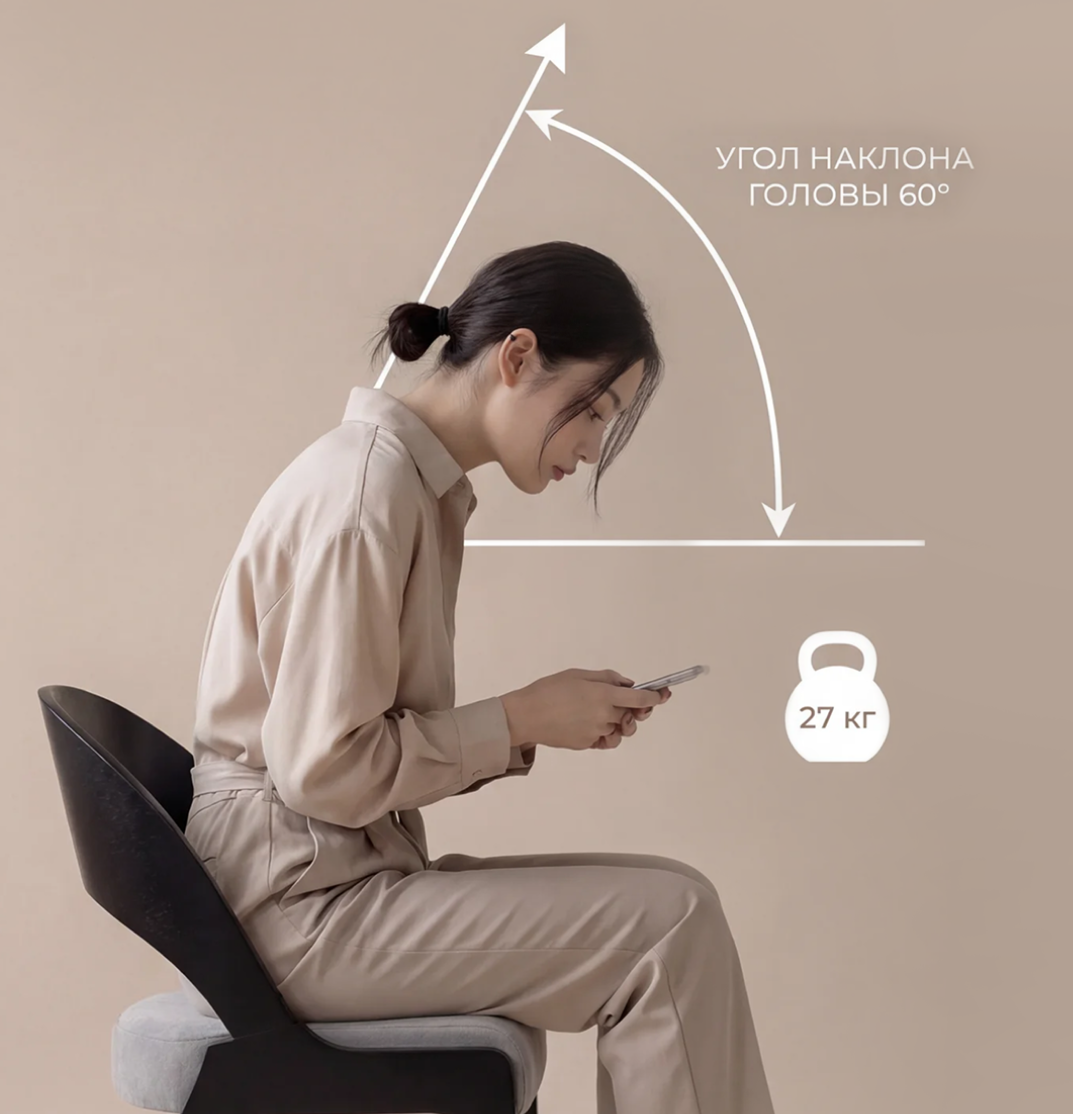 Знаете ли вы, что каждый раз, когда вы листаете ленту в смартфоне или работаете за ноутбуком, ваш позвоночник испытывает колоссальные перегрузки? В прямом смысле слова. Мы в Yamaguchi любим цифры, потому что они честно показывают, через что проходит наш организм. В нейтральном положении голова взрослого человека весит около 4–5 кг. Но стоит нам наклонить её всего на 15 градусов вперёд (а именно так мы обычно смотрим в экран), нагрузка на шейный отдел вырастает до 12 кг. При наклоне в 30 градусов — до 18 кг. А когда вы сидите, сгорбившись над телефоном, шея держит уже 27 килограммов! Это не просто сухая статистика. Это ежедневный стресс, который мы даже не замечаем, пока организм не начинает бить тревогу. Давайте разберемся, к чему это приводит и как современные технологии помогают снять этот груз. Казалось бы, ну подумаешь, посидел в телефоне полчаса. Но наш организм устроен сложнее. В шее проходят не только мышцы и позвонки. Там спрятаны главные «магистрали» — позвоночные артерии, кот