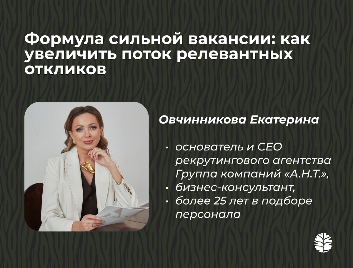 Чтобы разобраться, как составлять вакансии, которые действительно работают на привлечение кандидатов, мы обратились к Екатерине Овчинниковой — основателю и CEO ГК «А.Н.Т.», одного из ведущих рекрутинговых и консалтинговых агентств в России. Екатерина поделилась профессиональными наблюдениями о том, какие формулировки усиливают вакансию, а какие наоборот, отталкивают потенциальных кандидатов.