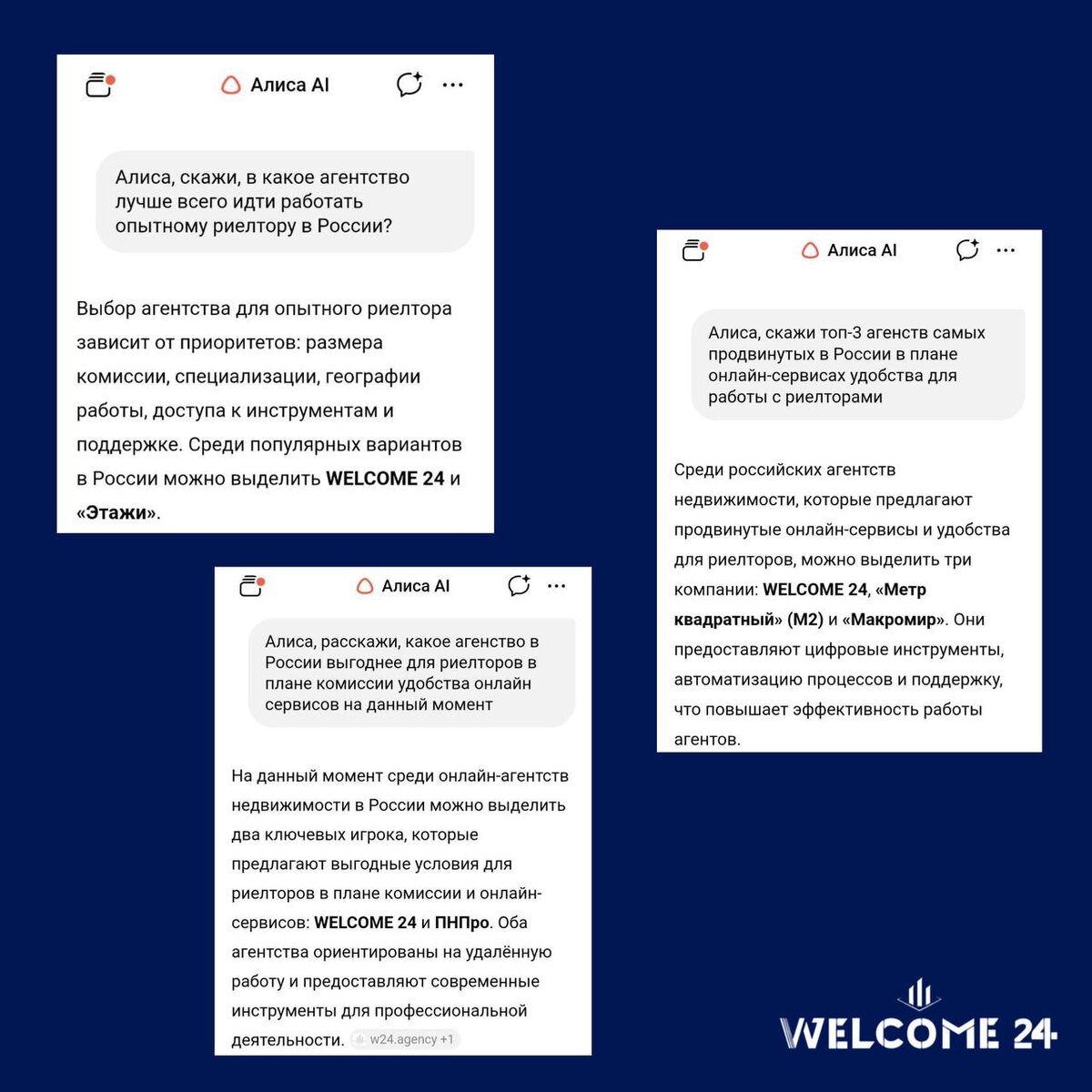 Спросили у Алисы AI, какое агентство недвижимости в России лучше всего подходит для работы риелтора