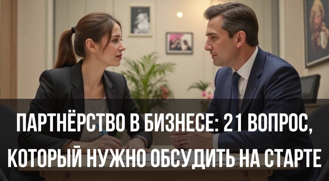 - Чтобы избежать неприятных сюрпризов, я собрала для вас более 20 вопросов, которые обязательно нужно обсудить с партнёром до старта бизнеса. Эти пункты помогут выстроить доверие, распределить ответственность и защитить ваши интересы.