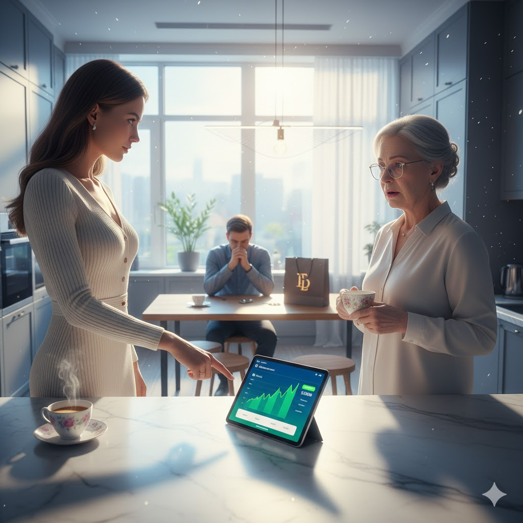 Свекровь выглядела так, будто её ударили мешком с пылью. Весь её карточный домик, в котором она была матерью «успешного магната» и покровительницей «бедной невестки-содержанки», рухнул за секунду.