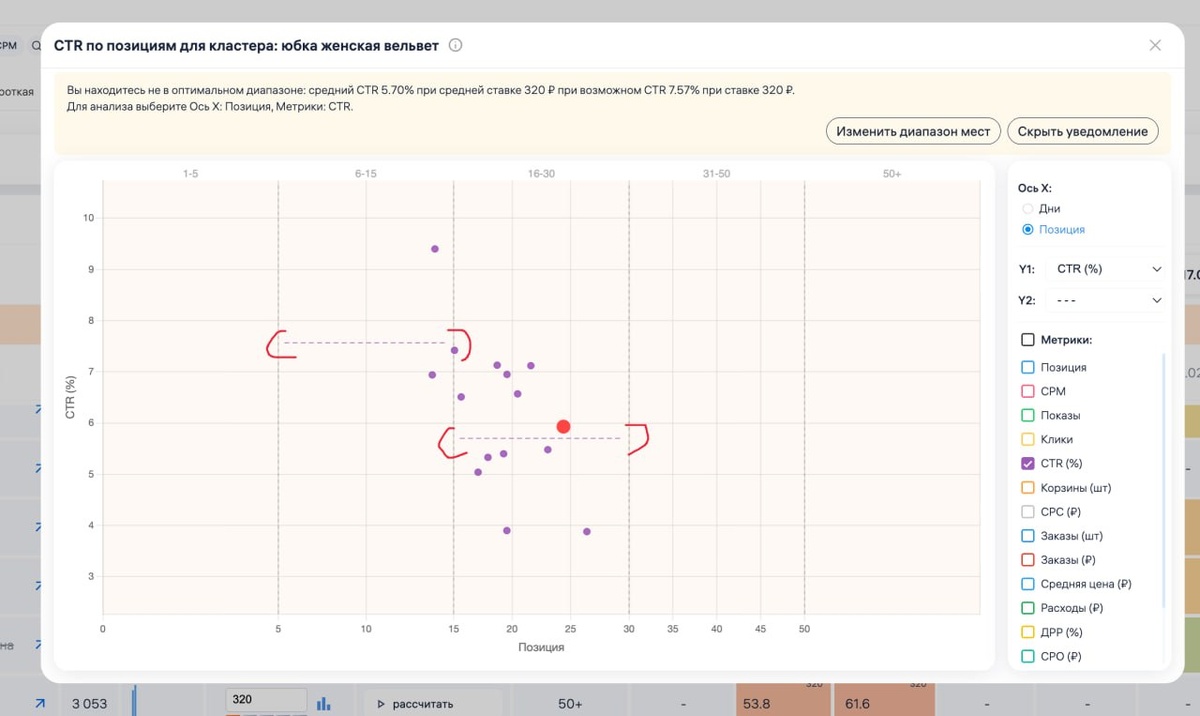 Как позиция в кластере Wildberries влияет на CTR и что с этим делать