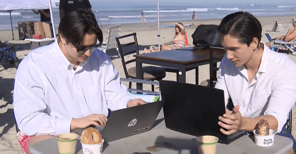 В американском городе Сан-Диего блогер и создатель цифрового контента Скотти Мьюрхед организовал неформальную встречу для дистанционно занятых людей. Участников пригласили поработать прямо на пляже Ло-стрит в районе Пасифик-Бич, взяв с собой ноутбуки и при желании спортивный инвентарь, например, доску для серфинга, футбольный или волейбольный мяч. Мероприятие предполагало дресс-кодом: «деловой стиль сверху — пляжный снизу». По словам организатора, такая формула отражает привычку многих сотрудников на удаленке одеваться для видеосвязи только наполовину — надевать деловую одежду, которая попадает в кадр, а остальное оставлять в повседневном или домашнем стиле. Идея встречи появилась после того, как Мьюрхед услышал совет певца и автора песен Джека Джонсона — «создавать больше, чем потреблять». После этого он начал экспериментировать с работой из разных мест в Сан-Диего, проверяя на практике политику своей компании, позволяющую сотрудникам работать из любой точки. «Я хотел быть более креат