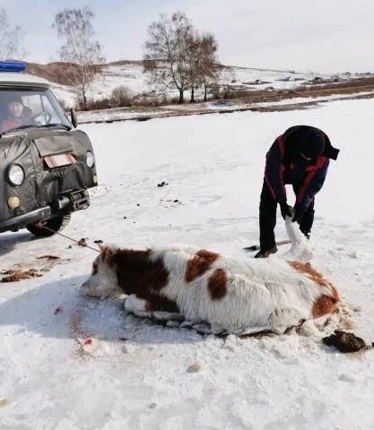 Корова провалилась под лёд в Агинском — пришлось подключаться спасателям