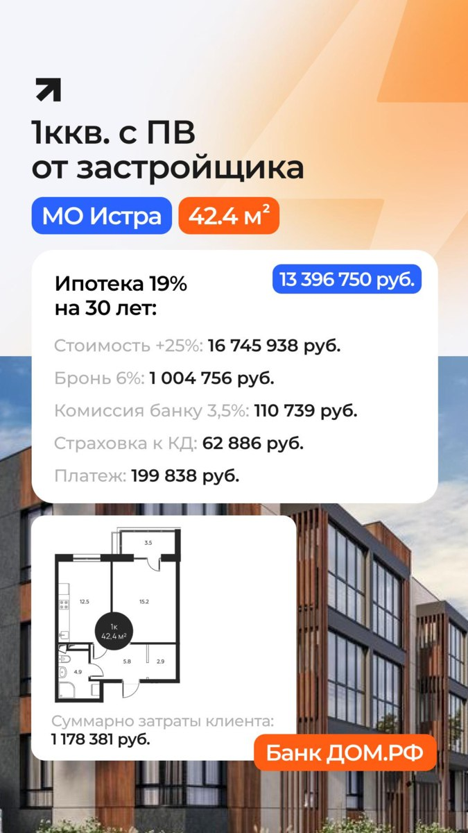 Нахабино (D2), 10 минут на транспорте • Стоимость в ДДУ рассчитывается как базовая цена +25%, из неё вычитается бронь 6%