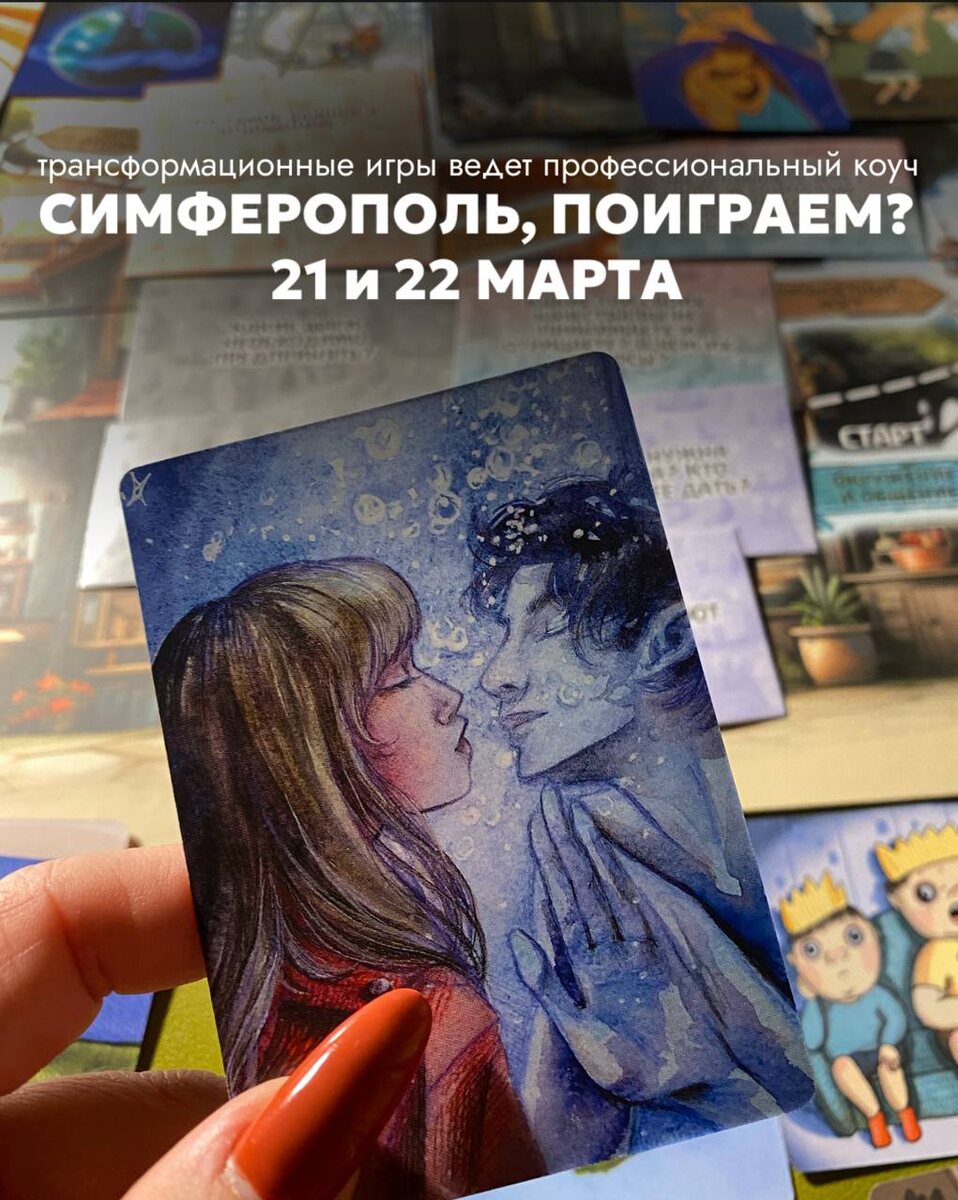 ? 👉 21 марта с 14:00 до 17:00 в «Карту внутреннего мира», чтобы: ⭕через метафору волшебного леса посмотреть на волнующий вас вопрос; ⭕увидеть подсказки бессознательного; ⭕найти ресурсы для решения конкретных ситуаций и задач; ⭕круто провести время в поддерживающем женском кругу. Количество участников: до 5 человек Длительность: 3 часа Стоимость: 2000₽ 👉 22 марта с 14:00 до 17:00 в «Жизнь, как дом», чтобы: ⭕разобрать текущую ситуацию с колесом баланса; ⭕обратить внимание на те сферы жизни, которые «проседают»; ⭕увидеть слепые зоны и точки роста в своей жизни; ⭕прописать конкретные цели/шаги по оптимизации баланса. Количество участников: до 5 человек Длительность: 3 часа Стоимость: 3000₽ 📍Место проведения обоих игр: коворкинг для помогающих практиков «Близко», ТЦ «Гагаринский», 4 этаж, кабинет 412 Трансформационные игры ведет профессиональный коуч. Запись по предоплате в ЛС @nastusha_kuleshova 😉