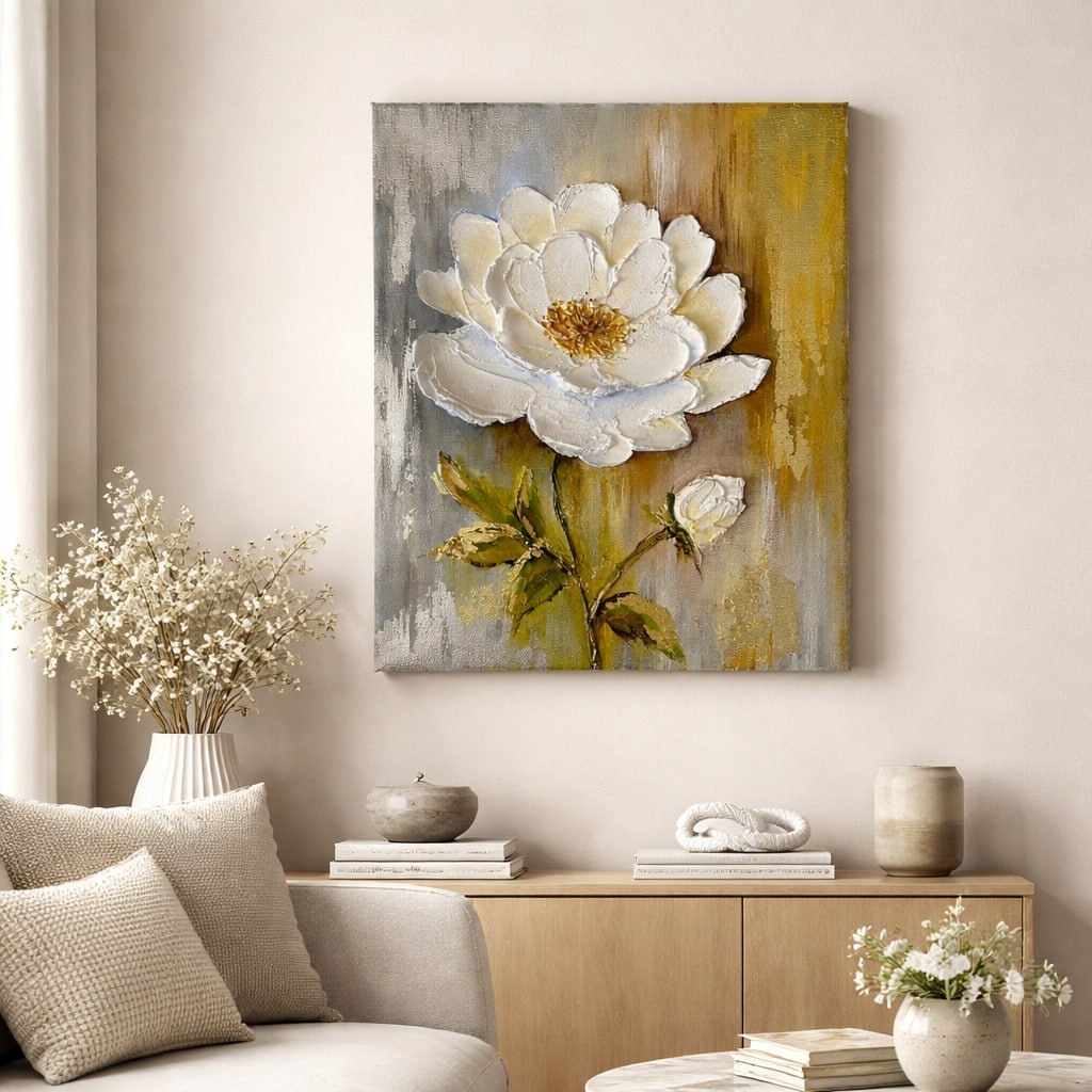 😍 Перед вами картина "Белый цветок" 🌸 Техника: фактурная живопись На этой работе вы: • научитесь создавать объёмные лепестки • освоите работу с текстурой • создадите выразительную композицию Фактура делает картину объёмной и живой