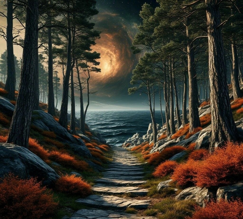 - Мы попали в другое измерение. Вы видите какие тут деревья, а небо вообще коричневое и вода такого цвета темного? - В голосе Ромы больше слышалось восхищение, нежели страх.