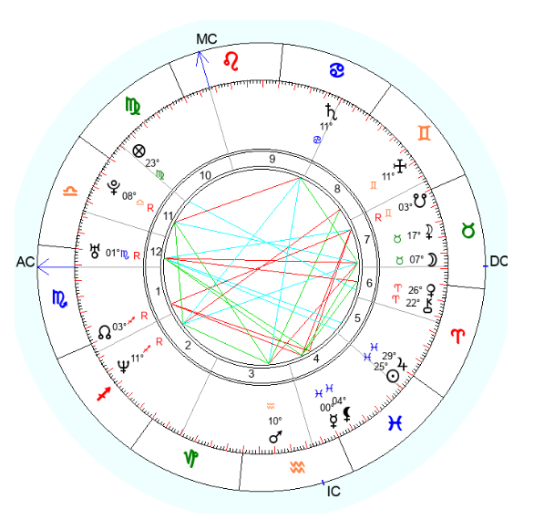 Редкий случай, когда дело при Нептуне во 2-м доме приносит еще и конкретный доход, причем регулярный. Все распланировано и понятно, никаких витаний в облаках. Человек очень структурно мыслит, работает по призванию и с большим энтузиазмом) Любит свое дело. Работа очень ответственная, максимально приближена по смыслу к полученному образованию и к профессии. Рассказывать ничего не буду сейчас, поскольку неинтересно тогда станет)) Карта женская. Не знаю, какие варианты кому приходят, пишите любые, буду благодарна, жду. Вот подсказки по звездам: Нептун на звезде Альваид Куспид 1-го дома - Гакрукс Куспид 2-го, Раху - Акраб Солнце и куспид 5-го на звезде Матар Луна - Шедар МС - Расалас Юпитер на звезде Шеат Лилит - Фомальгаут Подсказки по жребиям: Жребий целительства на куспиде 8-го дома Жребий карьеры точно на асценденте. Кстати. вот конкретный пример, как 4-й градус Рыб чрез Фомальгаут человек поднимает, хотя там Лилит в соединении с управителем 8-го в тау-квадрате к узлам. Предлагайте