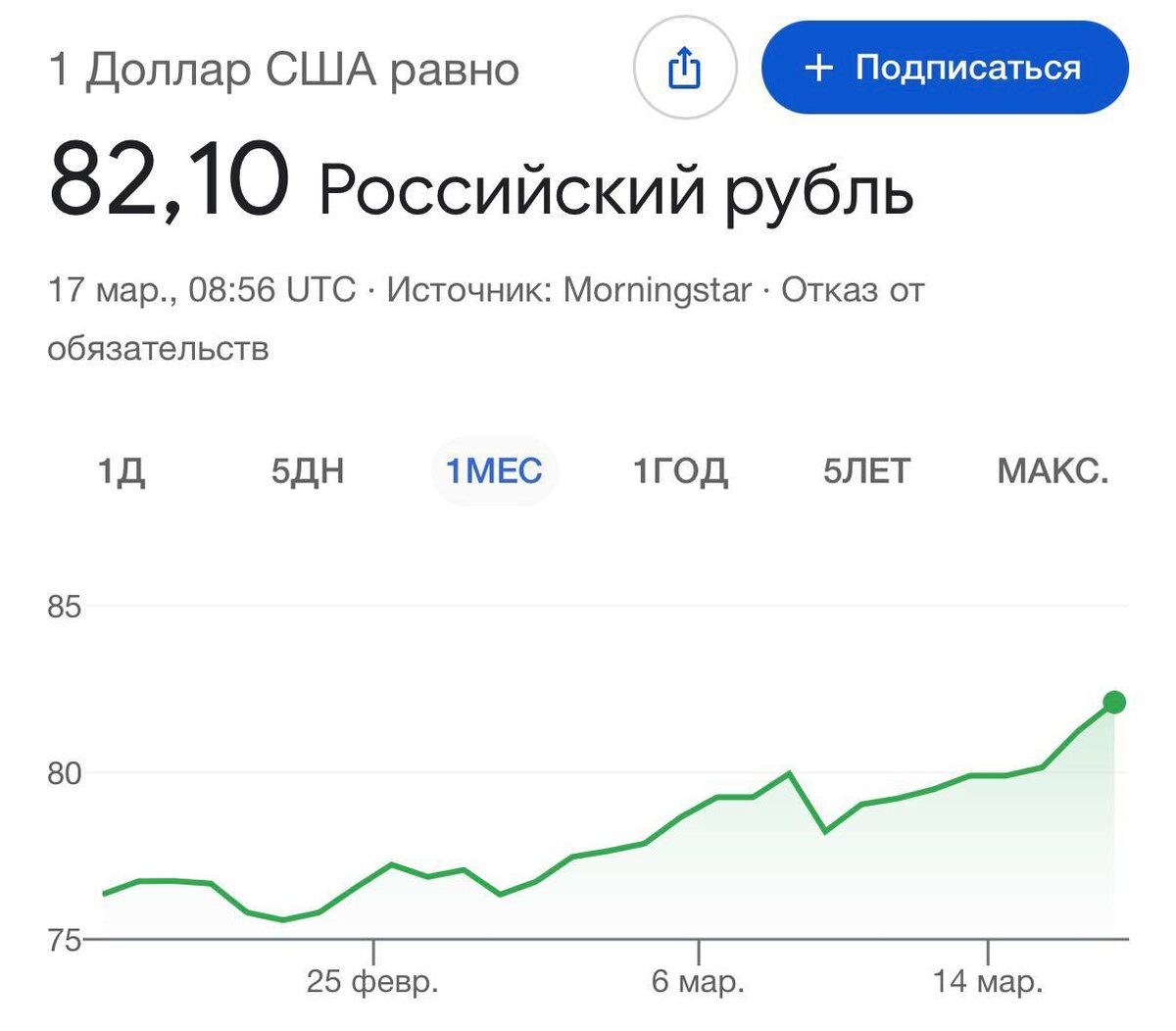 💰 Доллар улетел до 82 рублей впервые с октября прошлого года.