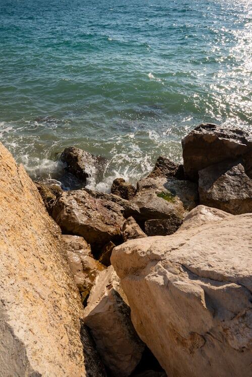Море — бескрайнее, сверкающее, манящее. И камни — конкретные, твёрдые, один за другим. Именно по ним и можно спуститься к воде.
