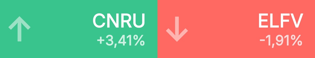 : Циан • 631 ₽ • 3,41% ВИ.ру • 81,84 ₽ • 2,72% ФосАгро • 7 502 ₽ • 1,31% МТС • 229 ₽ • 1,10% Яндекс • 4 515 ₽ • 0,61% СберБанк п • 318 ₽ • 0,60% СберБанк • 318 ₽ • 0,51% Мосбиржа • 175 ₽ • 0,46% НоваБев Гр • 434 ₽ • 0,42% Русал • 44,26 ₽ • 0,40% 🔻 Топ-10 лидеров падения среди крупнейших акций: ЭЛ5-Энерго • 0,49 ₽ • -1,91% Сегежа • 1,23 ₽ • -1,80% ММК • 29,15 ₽ • -1,77% Россети • 0,07 ₽ • -1,45% Селигдар • 56,49 ₽ • -1,43% М.Видео • 73,40 ₽ • -1,41% Ренессанс • 90,92 ₽ • -1,28% Юнипро • 1,51 ₽ • -1,11% Мосэнерго • 2,21 ₽ • -1,01% НЛМК • 104 ₽ • -0,99%