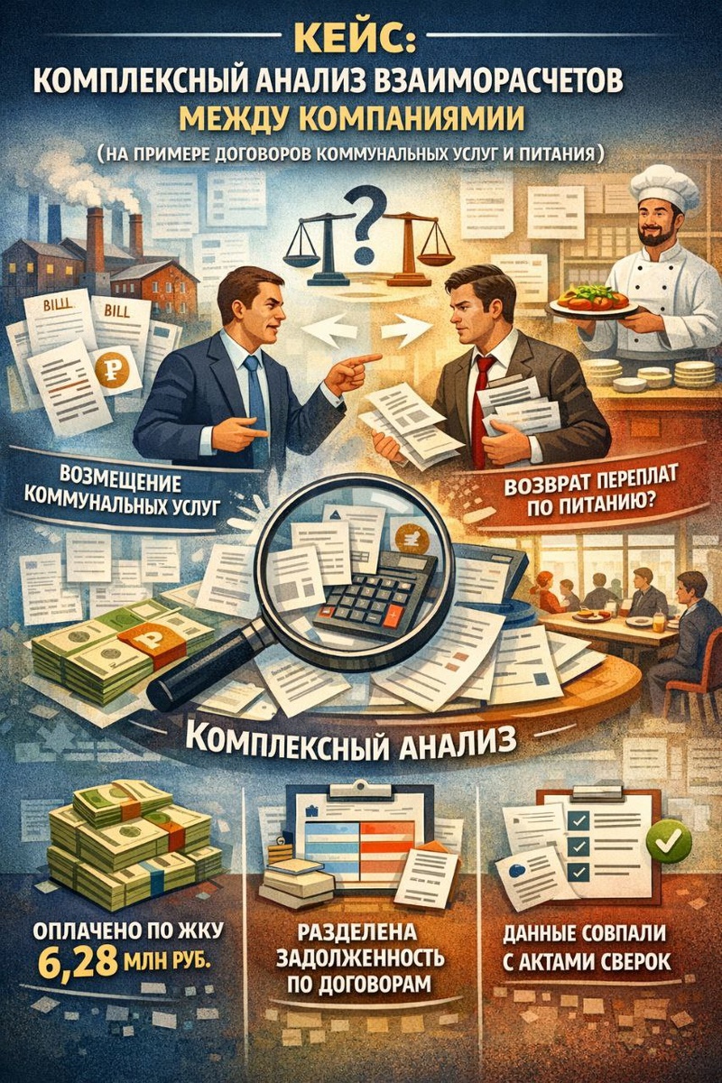 💼 КЕЙС: КОМПЛЕКСНЫЙ АНАЛИЗ ВЗАИМОРАСЧЕТОВ МЕЖДУ КОМПАНИЯМИ (НА ПРИМЕРЕ ДОГОВОРОВ КОММУНАЛЬНЫХ УСЛУГ И ПИТАНИЯ