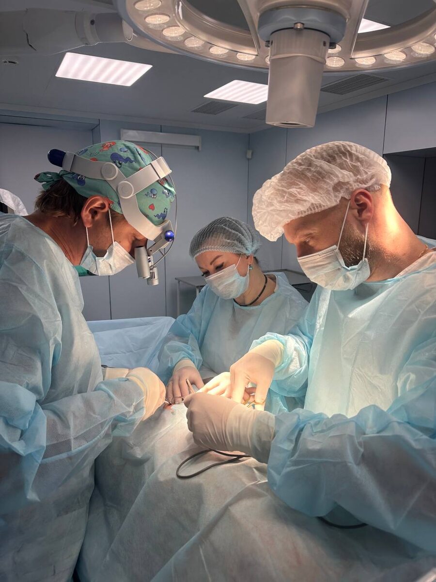 👨⚕️🔪 Сегодня была интересная и показательная операция. Вместе с коллегой-хирургом Пугачевым Алексеем Никитичем, мы выполнили симультантное вмешательство - то есть провели две разные операции одновременно одному пациенту. Что сделали: 1. Я выполнил микрохирургическую субингвинальную варикоцелэктомию по Мармару в собственной модификации, при варикоцеле 3 ст. Это «золотой стандарт» лечения данного заболевания. Метод позволяет под увеличением, максимально точно перевязать расширенные вены, сохранив лимфатические сосуды и артерию. Это сводит к минимуму риск рецидива и послеоперационных осложнений (например, водянки яичка). 2. Коллега-хирург: выполнил грыжесечение - пластику пупочной грыжи. Почему это круто для пациента? (Преимущества симультантных операций) ✅ Один наркоз вместо двух. Пациент избавляется от двойной нагрузки на организм и рисков, связанных с повторным обезболиванием. ✅ Один период реабилитации. Вместо того чтобы лечиться и восстанавливаться дважды с перерывом в несколь