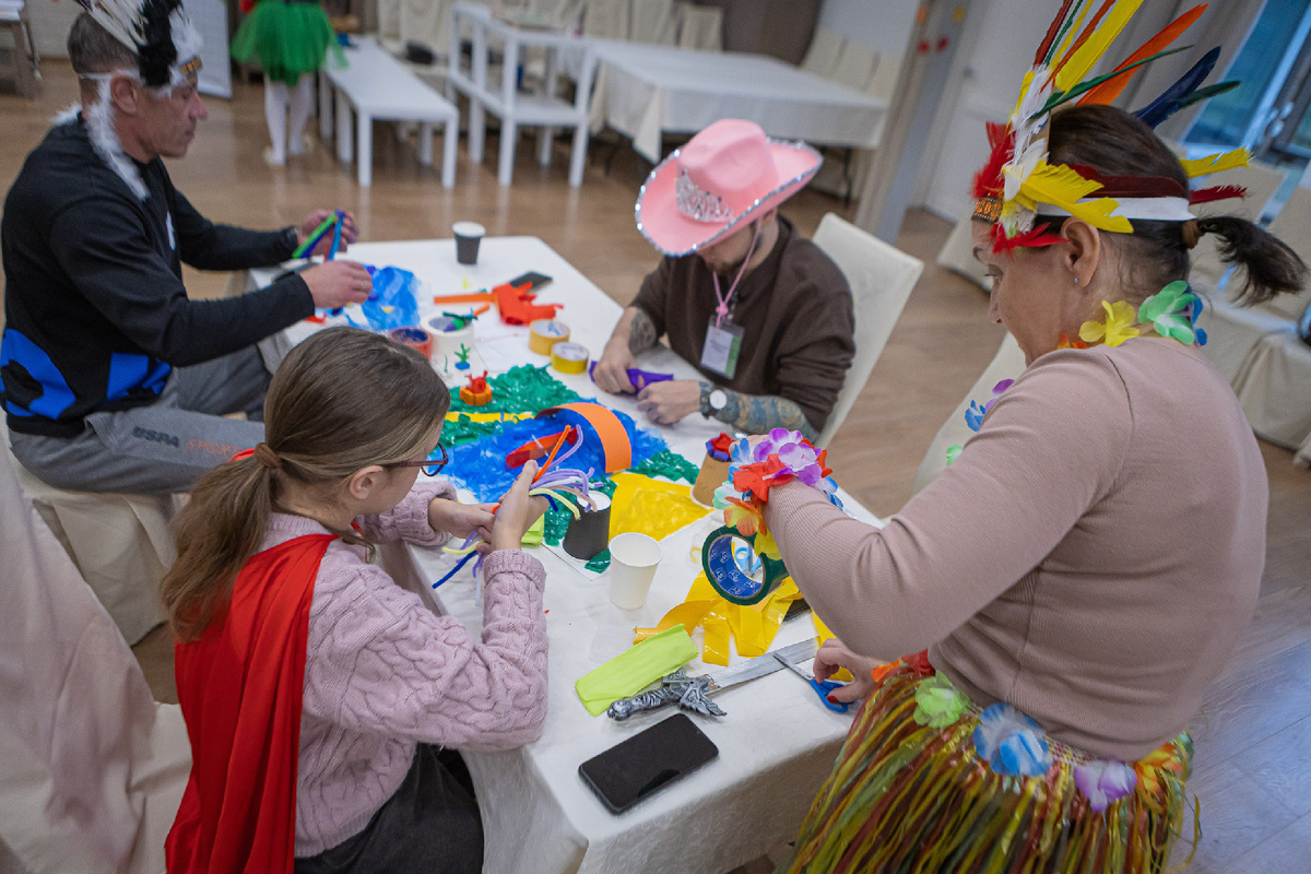 Мы спросили Сашу и ее родителей, Ольгу и Никиту, что им запомнилось больше всего за три дня реабилитационной программы. И почти в один голос они сказали — понравилось все: и мастер-классы, и игры, и время с волонтерами. Ольга поделилась: «Если бы волонтеры не вкладывали свою любовь и внимание, то встречи не были бы такими теплыми». Сейчас семья любит ходить в музеи, театры, гулять у Финского залива и встречаться с друзьями. А эти дни стали дополнительной возможностью просто побыть вместе – без спешки, быта и дел. Играть в настольные игры, пробовать новое на мастер-классах, смеяться и не думать о повседневных заботах. Саша рассказала нам о новом друге, которого встретила на «Семейных выходных». Они с Тимофеем быстро нашли общий язык и почти все время проводили вместе: играли в настольный керлинг, мастерили поделки на мастер-классах, смеялись и поддерживали друг друга. — Смотри, у нас костюмы индейцев! – хвастается новому другу Саша. — А мы все пиратами стали, – отвечает Тимофей. Во вре