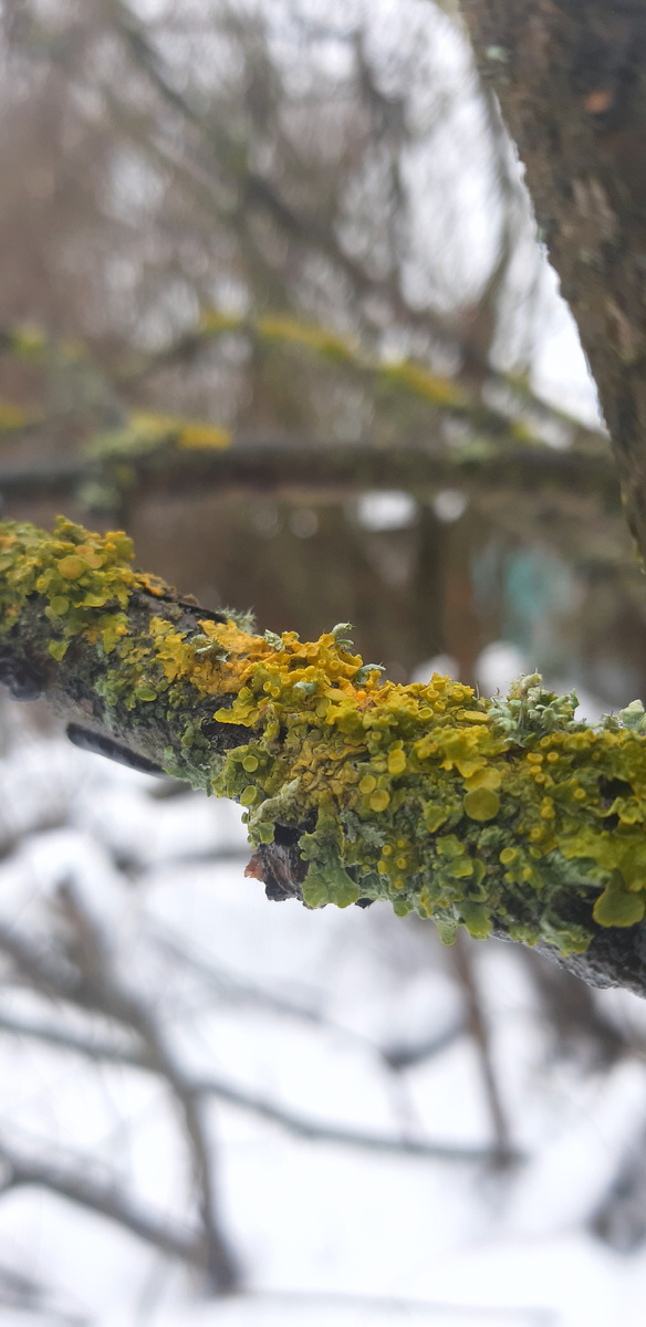 Как будто новгородский день начала марта был листом сырой акварельной бумаги, и деревья получились на нём не чётко, а слегка размыто по краям, близоруко. Толсто, как будто ветви и стволы тщательно обернули мохнатым. Это густо и непринуждённо произрастали на коре лишайники самых весёлых цветов, делая деревья одновременно вечнозелёными, вечножёлтыми, вечнооранжевыми, вечномятными... Сказочными, как в берендеевом царстве. Древнем, как эта земля. Так поработала здешняя сырость, болотистая близость. Идеальные условия создала она для странных этих типов - не то водорослей, не то грибов. Уютно и привольно расположились они здесь и там, и ещё вон там. Везде. И одето дерево и раздето - как будто выполняет мудрёное задание своего царя. И трудно отвести глаза от этой живописи, корнями уходящей в такие же замшелые, лишаистые, закутанные в мохнатое времена, из которых росли города и деревья, и поколение за поколением людей. Много воды здесь утекло. И ещё одна капля подражала и тоже сорвалась с ветк