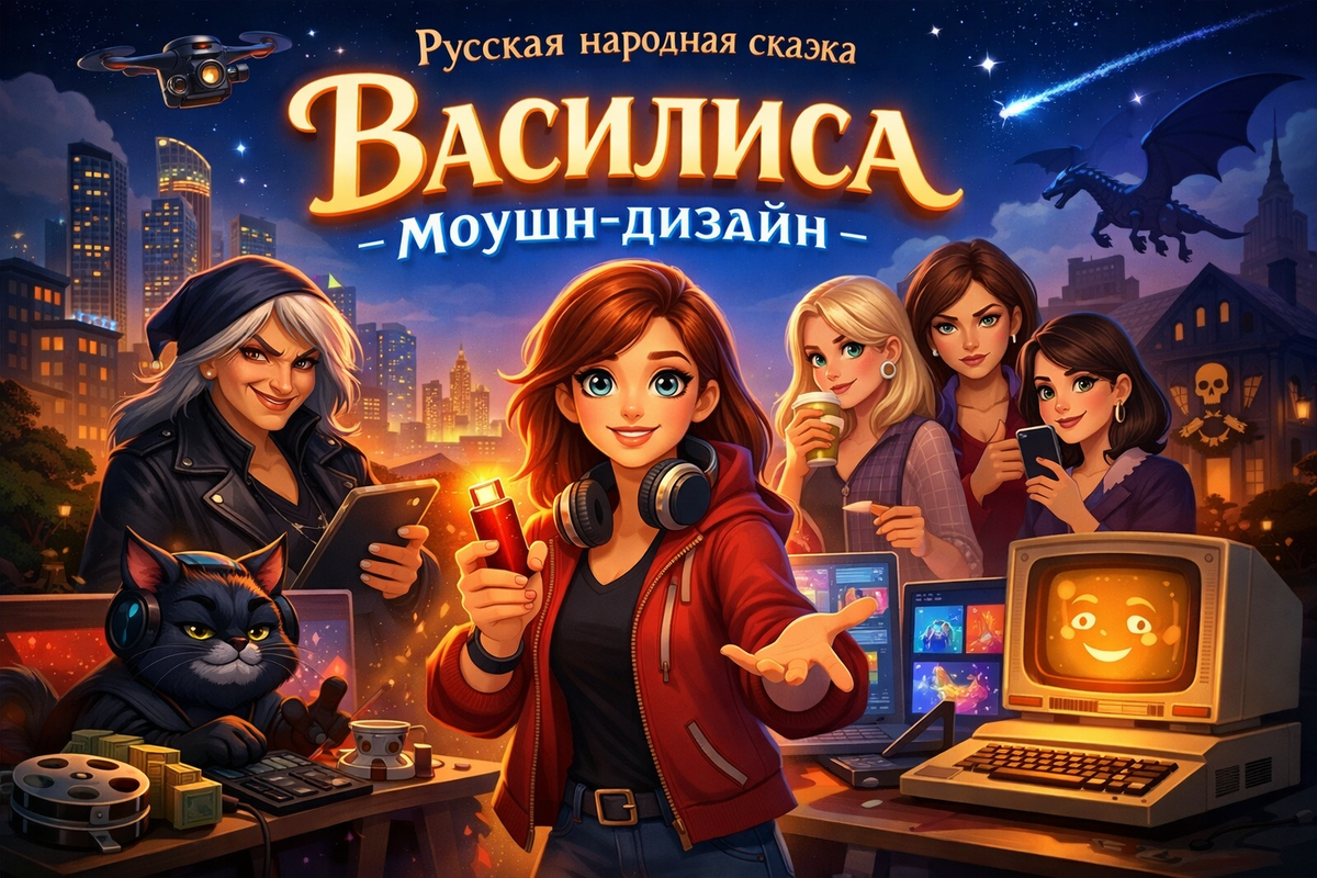 В одном городе, который очень напоминал современный мегаполис с его коворкингами, стартапами и бесконечными дедлайнами, жила-была девушка по имени Василиса. Была она моушн-дизайнером. То есть, она рисовала движущиеся картинки, анимацию, рекламные ролики и прочую красоту, без которой сейчас ни один бизнес не обходится.