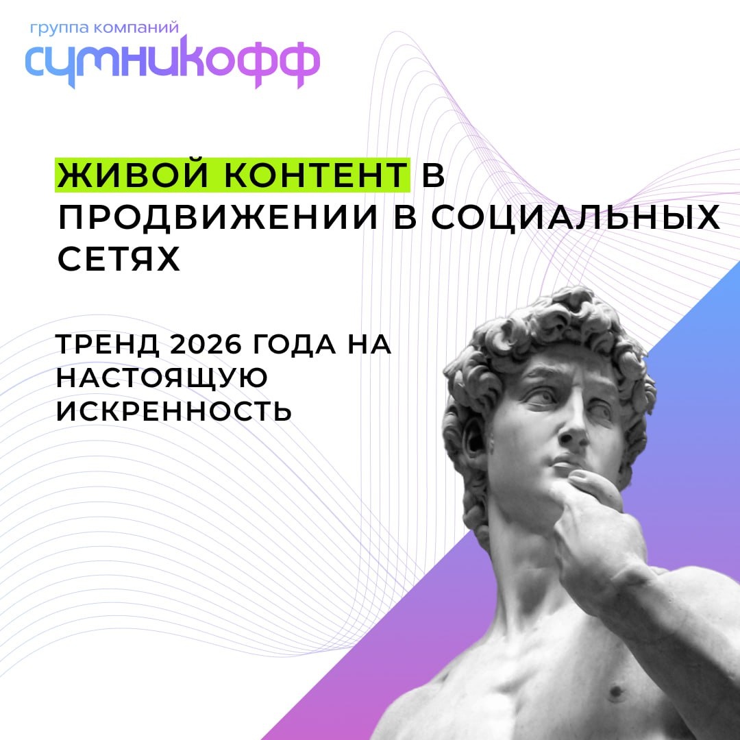 📹❤️ В 2026 году люди устали от глянцевых постановок и идеальных картинок 😴. На первое место выходит живой, неидеальный контент: - закулисье съёмок 🎥 - спонтанные видео с телефона 📱 - честные разговоры без текста 🗣 - эмоции, юмор, обычная жизнь 😂 Такой подход вызывает доверие и увеличивает вовлечённость в 2–3 раза сильнее, чем отшлифованные публикации 🔥. Аудитория хочет видеть живых людей 👀. По трендам 2026 года: - естественный контент побеждает глянцевый: уровень вовлечённости растёт на 30–50%+ - прямые трансляции, сторис без монтажа, короткие видео от первого лица — то, что алгоритмы продвигают - бренды показывают сотрудников, процесс работы, повседневность — это держит внимание и вызывает комментарии - истории от подписчиков усиливают эффект Переходите от идеальной картинки к настоящей личности — и увидите рост реакций и лояльности! 👏 Обращайтесь в веб-студию 📞 +7 (918) 640-58-44 🌐 sumnikoff.ru