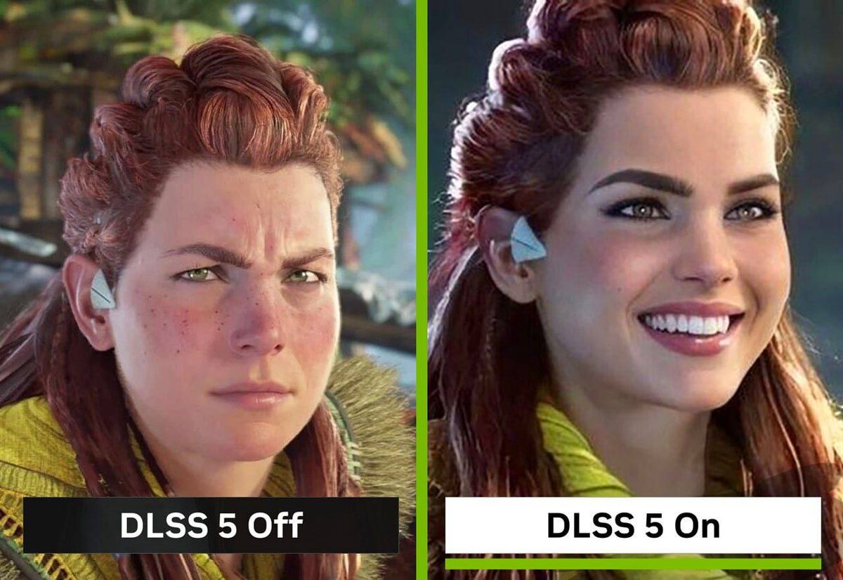 ? Вчера NVIDIA представила DLSS 5 — новое поколение апскейлинга, которое фактически делает следующий шаг: ИИ-рендеринг в реальном времени. Если верить презентации, технология сможет почти без нагрузки повышать разрешение до 4K, генерируя недостающие детали при помощи нейросетей. Релиз ожидается осенью. На бумаге звучит впечатляюще. Но реакция игроков оказалась… не совсем такой, как ожидали в NVIDIA. В чём претензии Пользователи быстро начали сравнивать демонстрации DLSS 5 с дешёвыми ИИ-фильтрами из TikTok. Основные опасения такие: • ломается художественный стиль игры • атмосфера может «плыть» из-за ошибок генерации • лица персонажей теряют живость • в разных сценах они могут выглядеть по-разному То есть проблема классическая для ИИ-генерации: алгоритм дорисовывает то, чего изначально не было, и делает это не всегда предсказуемо. Реакция интернета Разумеется, всё это моментально превратилось в мем-фабрику. Игроки уже шутят, что скоро игры будут выглядеть так: • 25% — реальный