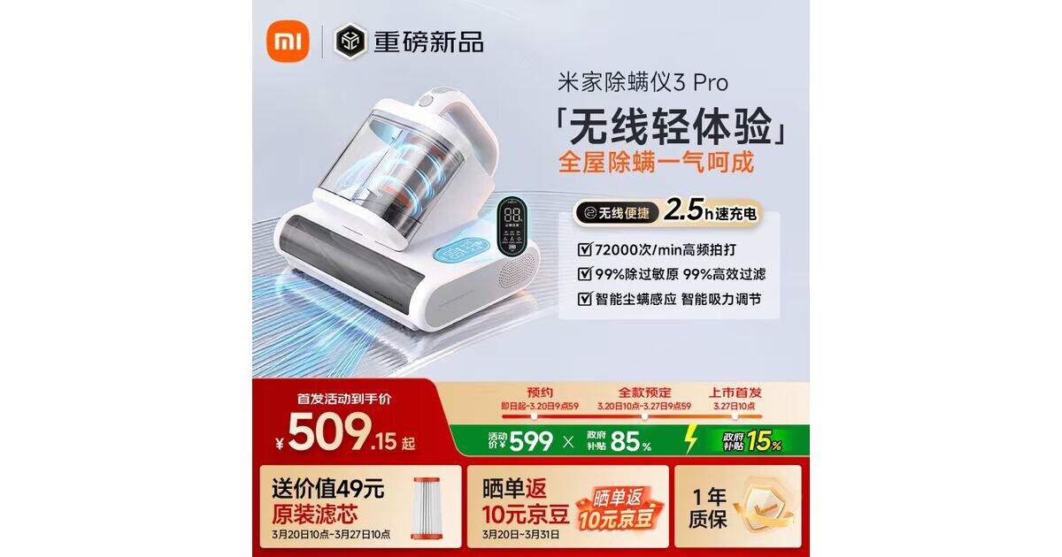 Компания Xiaomi выпустила новый пылесос против клещей Mijia 3 Pro с автономным питанием и лёгким корпусом весом всего 1,7 кг. Новинка стоит 599 юаней, а после применения государственных субсидий цена может снизиться до 509,15 юаня. Аппарат умеет в реальном времени отслеживать концентрацию пылевых клещей, фильтрует воздух на 99% и обеспечивает мощное всасывание благодаря обновлённому безщеточному мотору с тягой 17 кПа. Ещё по теме: Mijia 3 Pro оснащён функциями интеллектуального контроля: он автоматически регулирует силу всасывания, использует ультрафиолетовое излучение и ультразвуковую технологию для уничтожения клещей и бактерий. Пылесос поддерживает быструю зарядку, что обеспечивает до 30 минут работы без подзарядки. Благодаря беспроводному дизайну устройство не привязано к розетке, что делает уборку комфортнее и мобильнее. ⚡Подписывайтесь на канал itzine и канал подкаста ForGeeks в Telegram! Там самые свежие новости про технологии, гаджеты и космос. В условиях продолжающейся поддерж