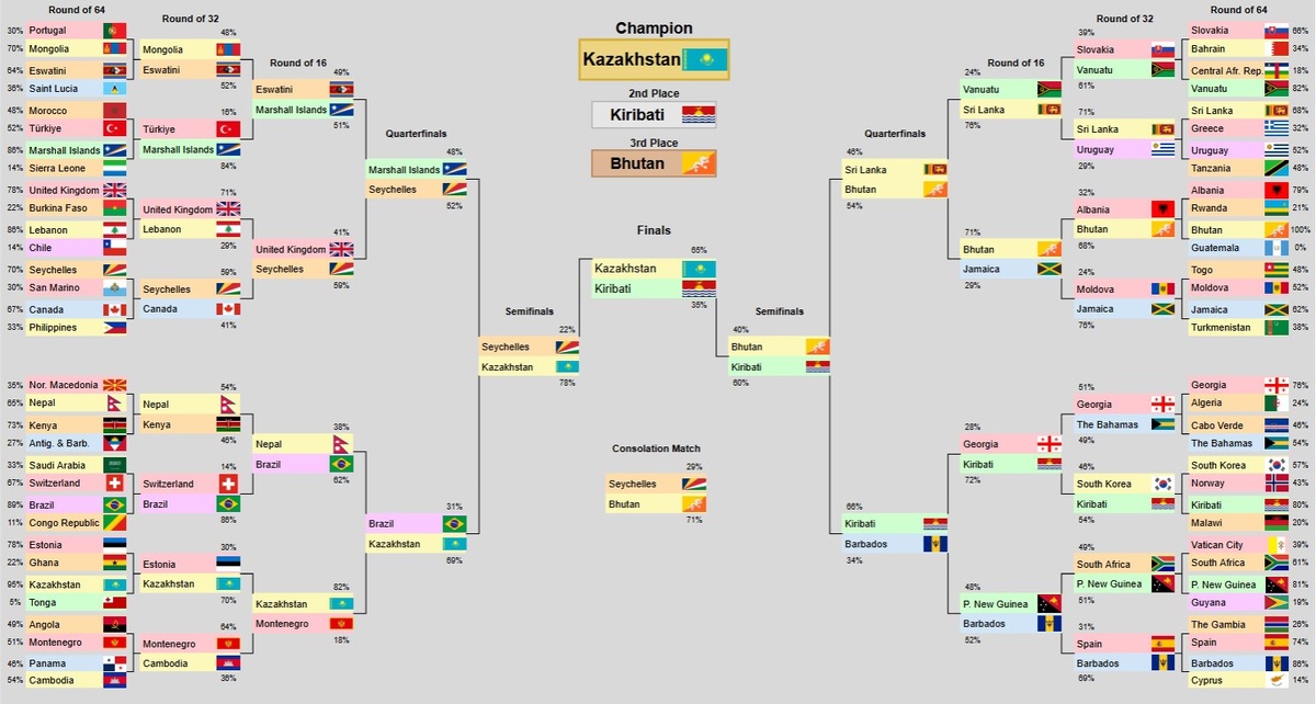 Пользователи Reddit в онлайн-турнире Flags of the World Tournament (r/flags) выбрали флаг Казахстана самым красивым среди всех государственных флагов мира. В финале он уверенно обошёл флаг Кирибати, третье место занял флаг Бутана. «Казахстан — наш чемпион! Вы все проголосовали и решили, что это лучший флаг в мире», — написали организаторы турнира. Соревнование проходило в формате сетки на выбывание. До поздних стадий дошли флаги Сейшельских островов, Великобритании, Бразилии, Шри-Ланки, Ямайки и Папуа — Новой Гвинеи. #Казахстан #ФлагКазахстана #Reddit #ЛучшийФлаг #FlagsOfTheWorld #KazakhstanPride #МягкаяСила ROOTWIN_PROJECT