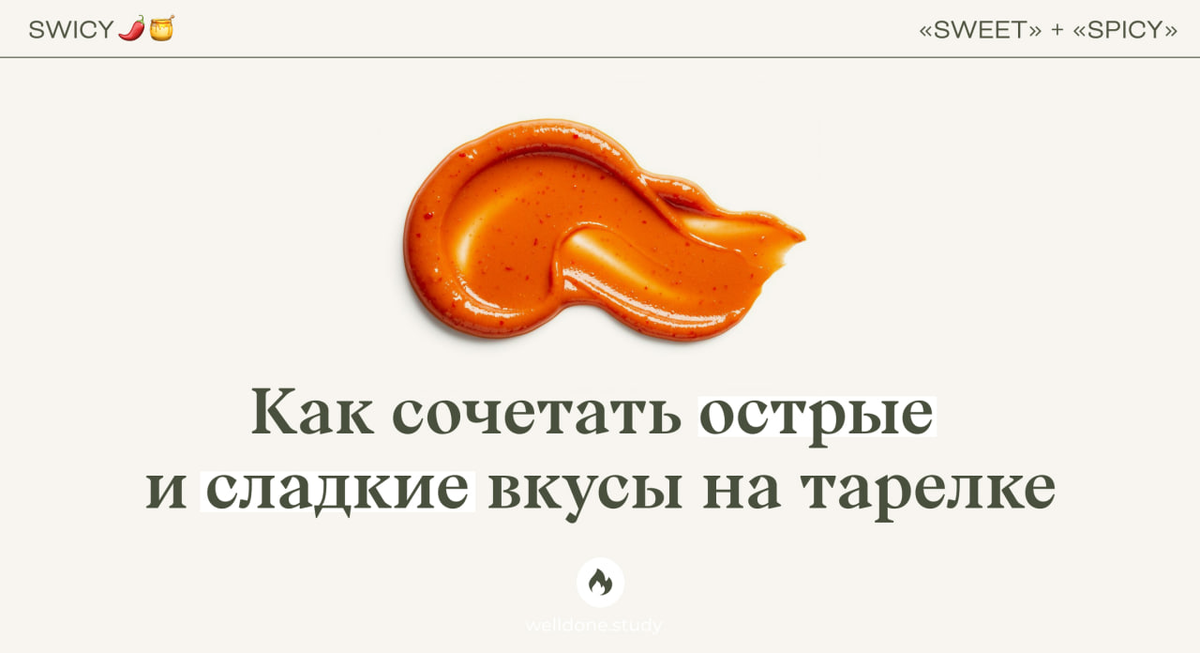 Сочетание сладкого и острого вкусов (в ресторанной культуре его называют swicy) — это один из самых сильных приёмов, который используют шефы, чтобы усилить вкус блюда. Этот принцип подробно описан в Тезаурусе вкусов — книге, на которую опираются повара по всему миру при создании новых сочетаний. Но дело не только во вкусе. 🔥 С физиологической точки зрения всё ещё интереснее: