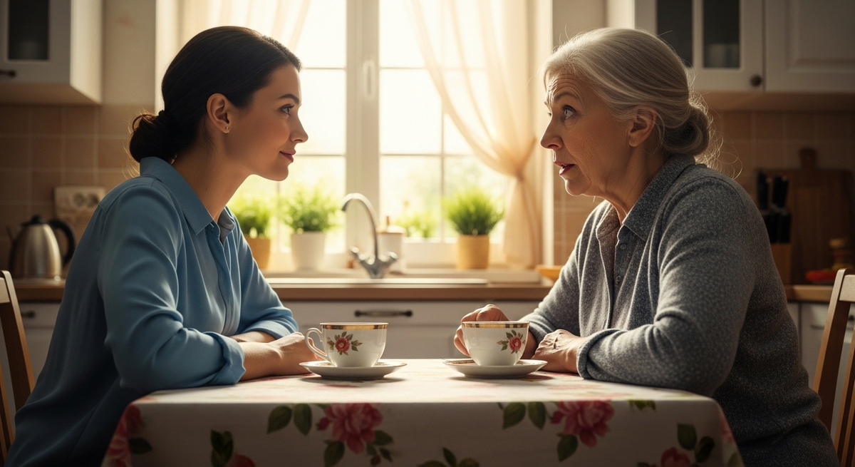 Утром Светлана Михайловна накрыла на стол — по-настоящему накрыла, с чашками из «парадного» сервиза и вазочкой с печеньем. Катя вошла на кухню и остановилась в дверях.