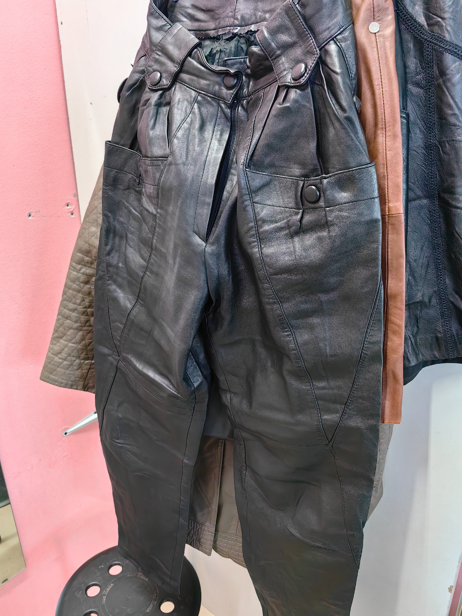 В общем, брюки эти мне безоговорочно понравились. Конечно, их нужно привести в порядок, как и все вещи, что я буду показывать ниже - все они долгое время провели в мешках и сильно помялись. Причем, чем мягче кожа, тем больше складок на вещах. Но всё это довольно просто делается, уже неоднократно и я писала о покупках вещей из натуральной кожи в секонд хендах и способах ее стирки, и в комментариях читатели давали советы и инструкции, как лучше и щадяще обработать кожу после покупки.