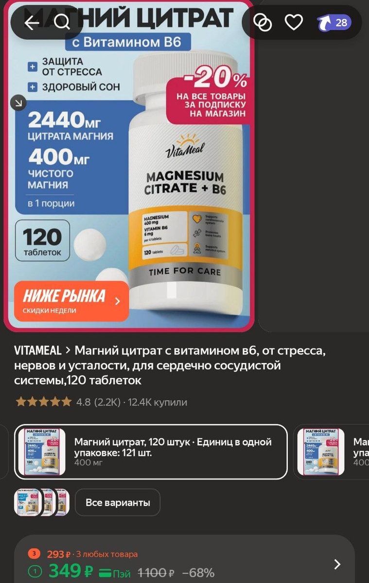 Магний цитрат с витамином в6, от стресса, нервов и усталости, для сердечно сосудистой системы,120 таблеток