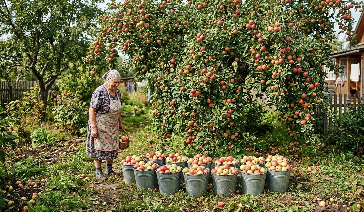 · А можно поступить по-старинке, с душой: разложить вокруг дерева перепревший навоз — щедрую горсть, по 4–5 ведер под взрослую яблоню. Это не просто еда, это тепло и защита.