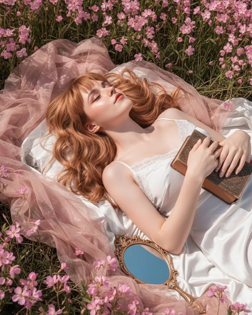 Загрузи свое фото и получи такое же изображение, на котором будешь ты. ✨ Создать фото через сайт ✨ ✨ Создать фото в телеграм боте ✨ Промт: Ультрареалистичный портрет девушки (внешность на 100% сохранена с референсного изображения). Ультрареалистичный лайфстайл-кадр с верхнего ракурса, снятый на iPhone 15 Pro, передающий искренний и умиротворенный момент. Лайфстайл-кадр с верхнего ракурса, вид сбоку (профиль), снятый на iPhone 15 Pro. Камера расположена чуть сбоку и сверху, захватывая девушку, лежащую горизонтально в кадре. Её боковой профиль четко выделяется на фоне мягких тканей: лоб, нос и подбородок подсвечены ярким солнцем. Голова слегка запрокинута назад, глаза закрыты с безмятежным, умиротворенным выражением лица и... Все промты для ИИ на нашем сайте и в телеграм канале #весна #романтичное #мечтательное #цветы #женщина