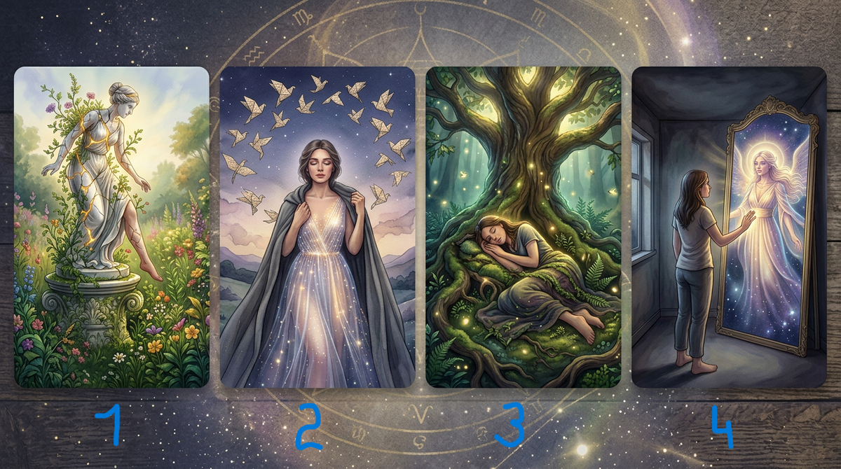 «Что на самом деле мешает мне двигаться вперёд прямо сейчас?» Посмотри на картинку ниже и выбери одну из четырех карт — не анализируй умом, просто почувствуй, к какой из них тебя тянет больше всего. Доверься своей интуиции. Меня зовут Наина.