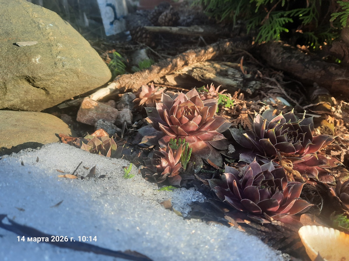 Несколько дней назад получила такой замечательный вопрос от читательницы. Она в прошлом году прислала мне целую коробку. Разных, маленьких и не очень. И не она одна! Есть подарочки и от других моих собеседниц! Светик, Людочка! Спасибо! Сегодня просто покажу то, что уже освободилось от снега. Правды ради верхний плотный слой я срыла на всякий случай, так что свобода была получена молодилками быстро! Эти подружки были одними из первых. Это соседки. Вся эта большая компания растет у меня давно. Зелененькие растут не быстро, но в определенных условиях вполне себе ничего. Очень хорошо зимуют, переносят различные погодные сложности. Из снега молодилки часто выходят в отличном состоянии. Эти как раз из новеньких! Это кровельное молодило. Давние у меня! И эти тоже! Они после зимы не такие интересные. Время потребуется некоторое. С теплом и солнцем появятся новенькие листочки! Эти растут очень медленно! Но растут! Их уже видно, а были с ноготок! С мизинчик! Но выжили, как видите, не все