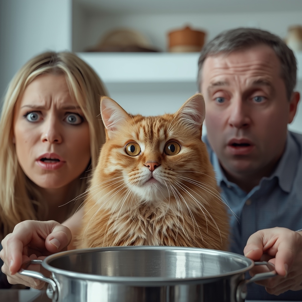 Посреди кухни сидел Василий. Перед ним лежала кастрюля — та самая, большая, в которой я варю борщ на всю семью. Как он её достал с верхней полки, до сих пор для меня загадка физики. Кот смотрел на кастрюлю, потом посмотрел на нас. С видом учёного, завершившего важный эксперимент.