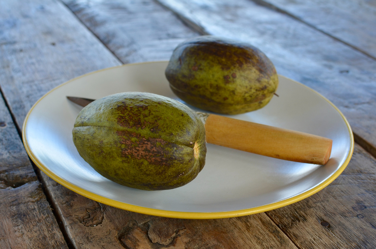3. Плод — одревесневающая вытянуто-округлая ягода оливкового цвета длиной до 10—25 см, содержащая внутри округлые семена.