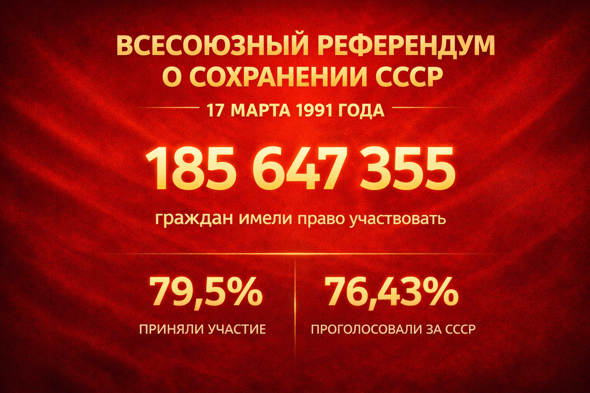 17 марта 1991 года состоялся всесоюзный референдум о сохранении СССР. Большинство граждан — 76,4% — высказались за сохранение Союза. Это было прямое решение народа о будущем государства.