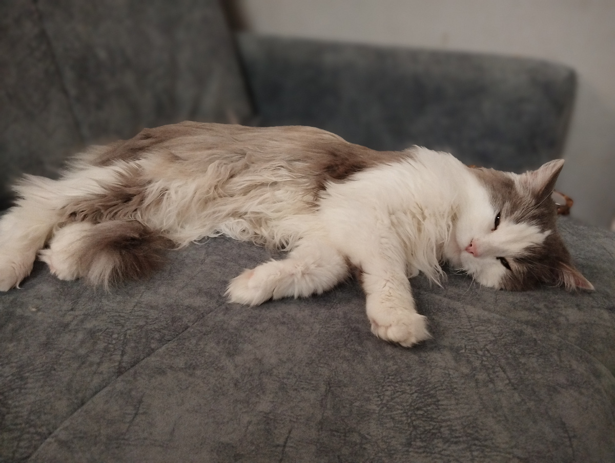 Нет, он не орал. Обошлось без песен и стихов. Хоть и репетировал. Сегодня он меня и бодал, и мурчал куда-то в сторону лица, и хвост свой ловил, предварительно расположив его где-то на мне и аккуратненько расправив.