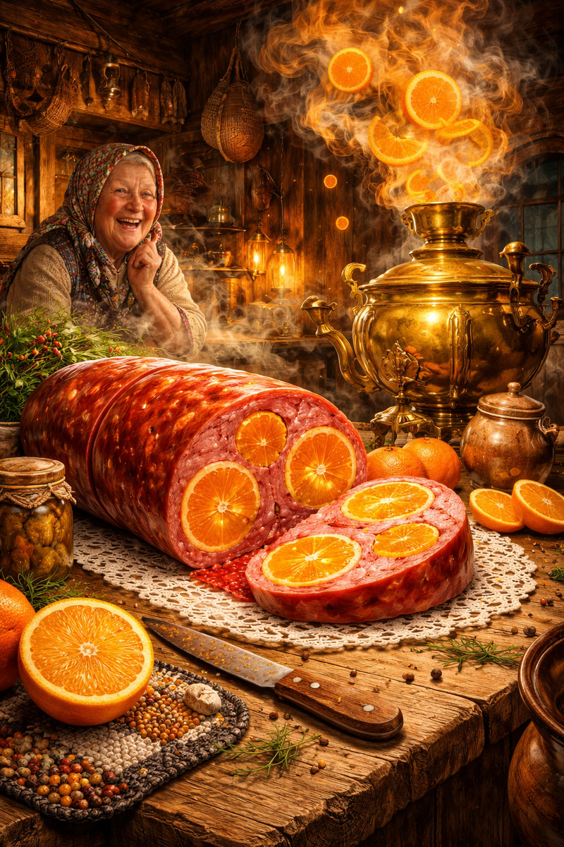 Ой, здравствуйте, мои ненаглядные, мои экспериментаторы кухонные! 👋 Сижу я вчера на табуреточке, смотрю на оставшуюся с праздников сеточку апельсинов и на батон докторской, который в холодильнике заскучал. И тут меня как молнией прошибло! ⚡️ Думаю: «А что, если соединить витамин С и наш родной, мясной витамин „К“ (колбасный)?». 🥓🍊 Это же будет не просто еда, это же будет фурор, это же будет прорыв, за который мне в Хренландии памятник из цедры поставят! 🏛️✨ Держитесь крепче за свои фартуки, сейчас я вам распишу рецепт, от которого у любого диетолога начнется икота, а у соседа по даче — косоглазие от любопытства! 🧐💥 Вы вот всё привыкли по старинке: колбаса на хлеб, апельсин на десерт. Скучно, деточки, скучно! 🥱 Мир-то сейчас какой? Всё перемешалось! Внук говорит: «Ба, это фьюжн!». А я ему: «Это не фьюжн, это когда у бабушки фантазия разгулялась и пенсию задержали!». 👵💸 Апельсиновая колбаса — это же решение всех проблем! Представляете: ешь бутерброд, и сразу тебе и бодрость цит