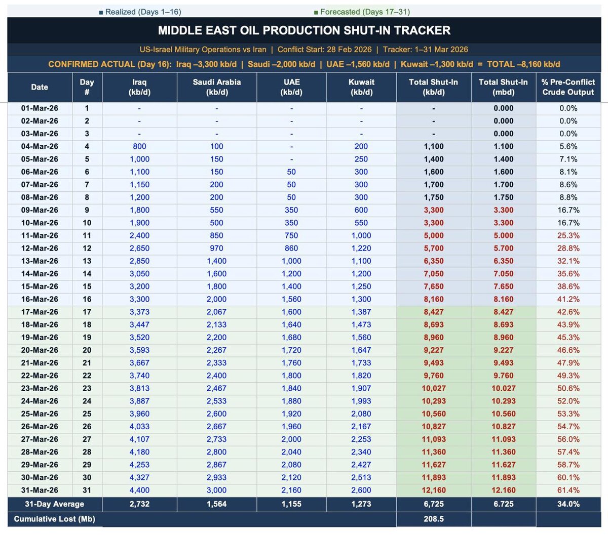 Заполненность нефтехранилищ на Ближнем Востоке.